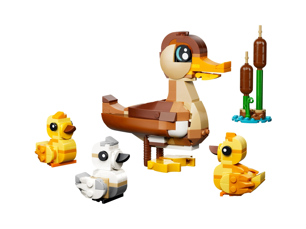 LEGO® s kachničkami (40885) vydají na zábavná dobrodružství. Tato zvířecí hračka pro děti obsahuje kachnu, 3 káčátka a rákos. Kachna má pohyblivý zobák a nohy, takže ji lze postavit nebo napolohovat do pozice plavání. Na zádech má navíc místo pro jedno z káčátek